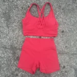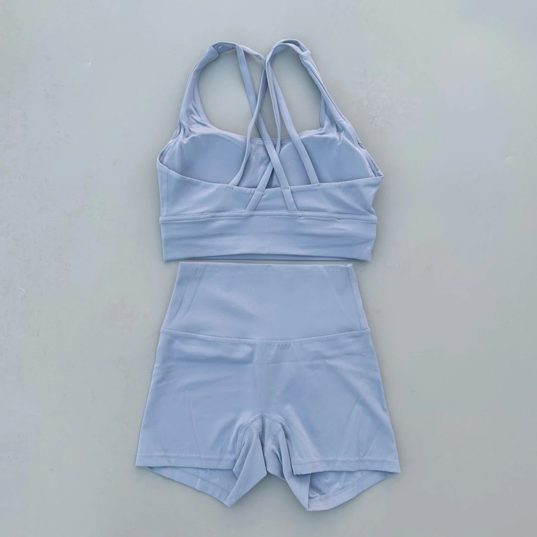 Solid Color gym bike Yoga Set short Legging +cross sport bra Tracksuit Athletic Women Gym Suit Comprehensive Training Jogging
