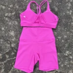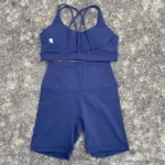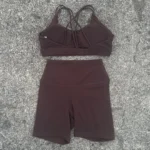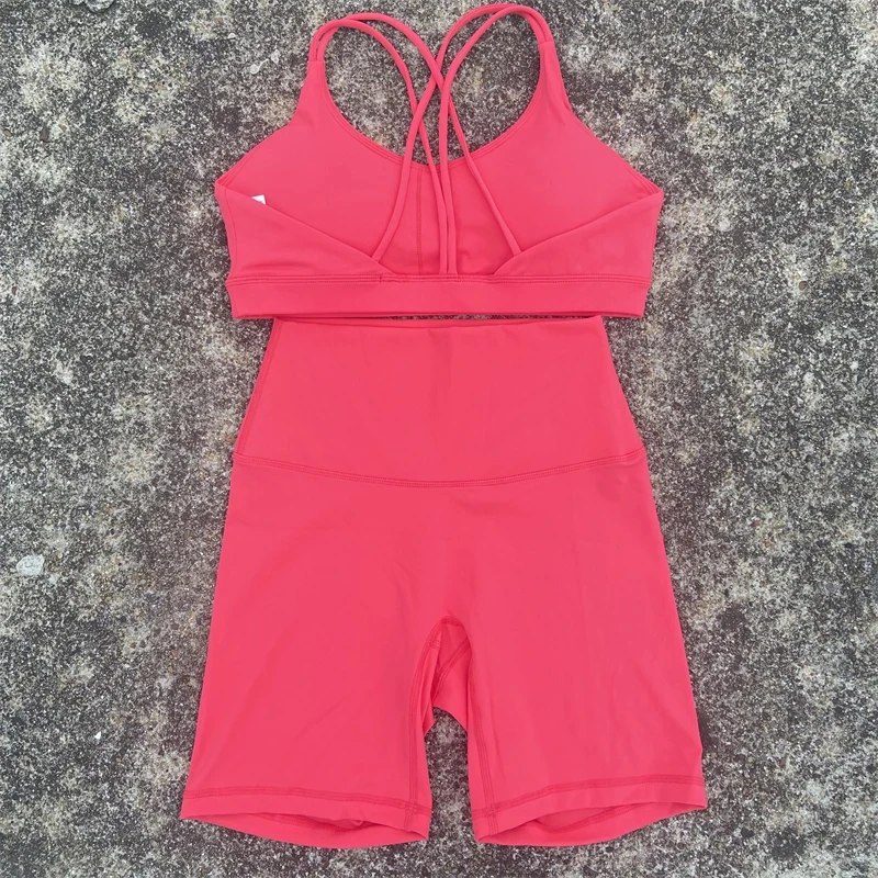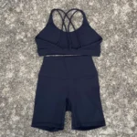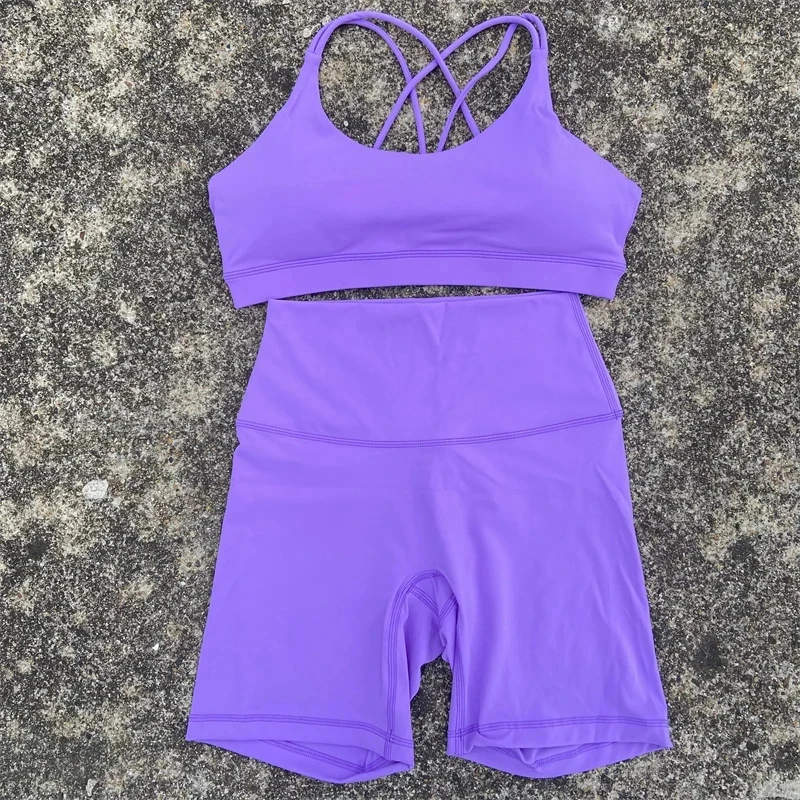 Solid Color Soft Women Gym Yoga Short Cycling Set Cross Back Gym Bra+High Waist Short Leggings High impact shockproof Sportwear