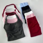 Yoga 2 Pieces Gym Set Women Backless Halter Tops High Waist Seamless Shorts Gym Suit Fitness Sports Bras Sportswear Workout Sets